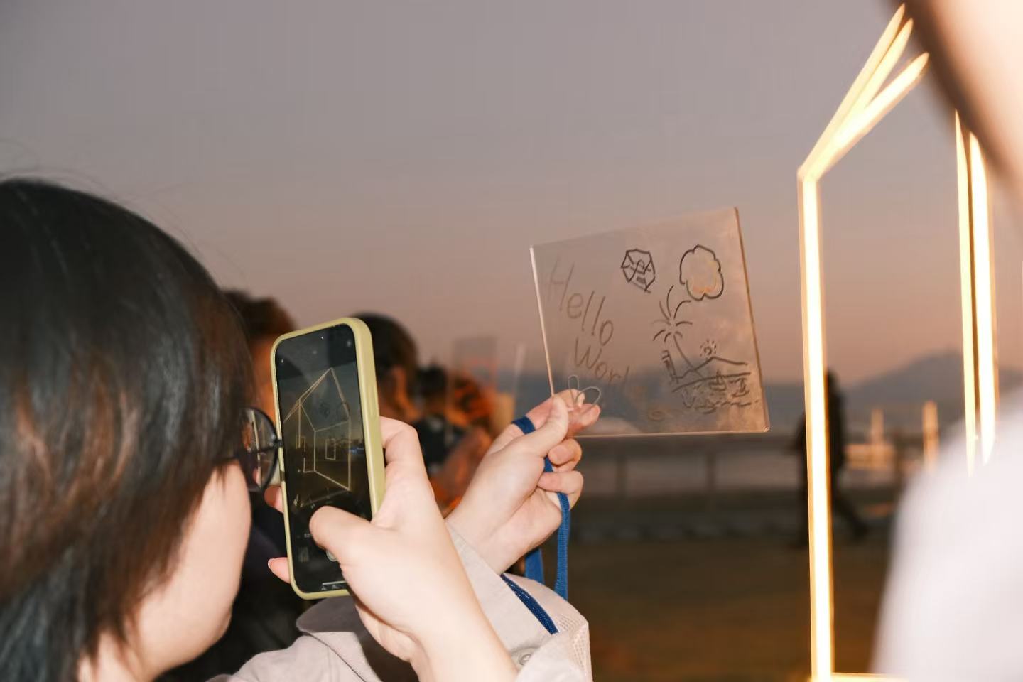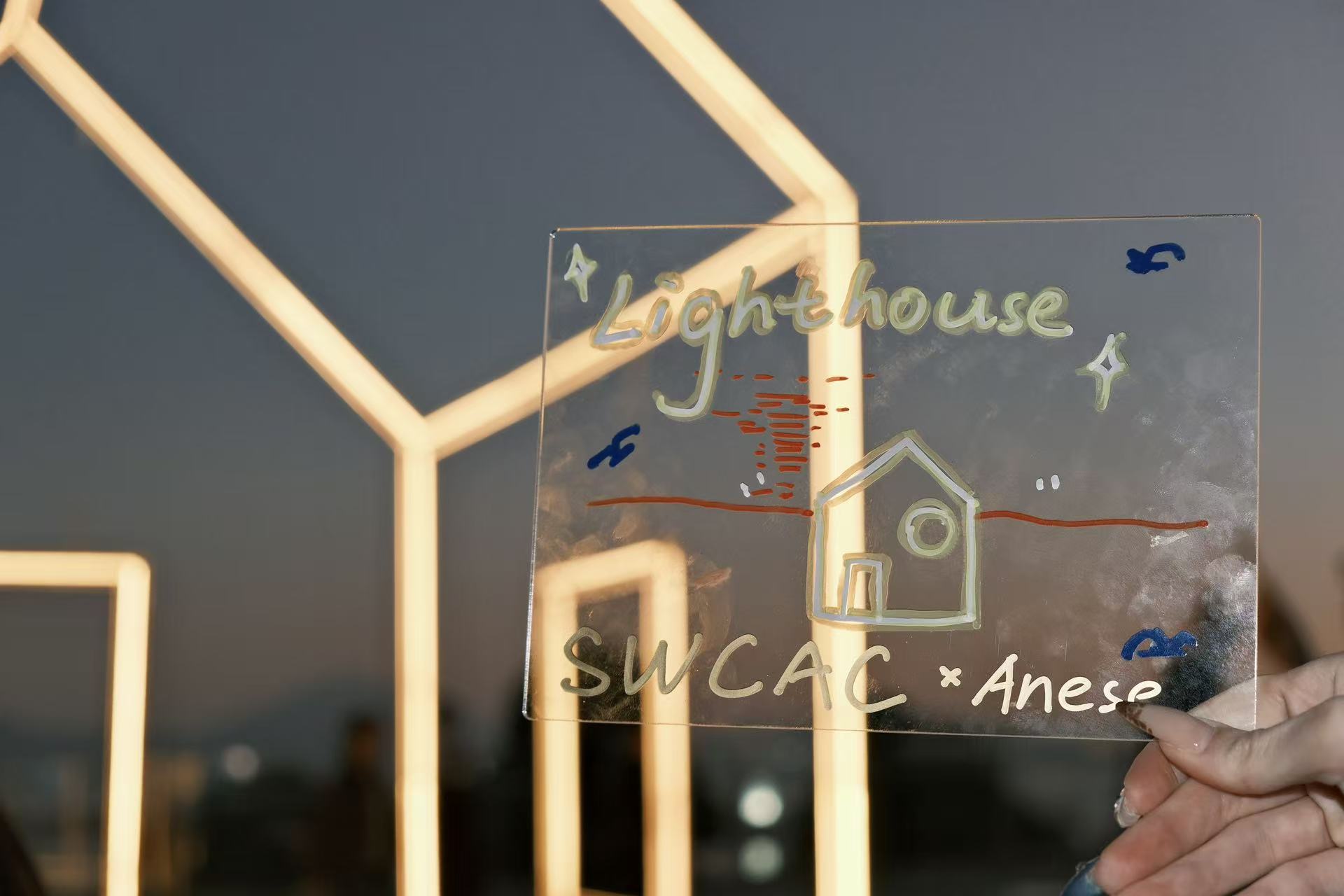 At 5:30 pm, the light was officially turned on. The sea breeze, the sound of tides, and the breath of the crowd all folded quietly into the glow. It felt as if the entire city had taken a deep breath together. Wilson Zhou Wei once again opened the ceremony, introducing this beam of light to everyone present. During the interactive session, we invited visitors to draw “the little house in their hearts.” Countless passersby were drawn in to create their own versions on-site. In that moment, Lighthouse became a vessel—carrying the stories of everyone who encountered it.